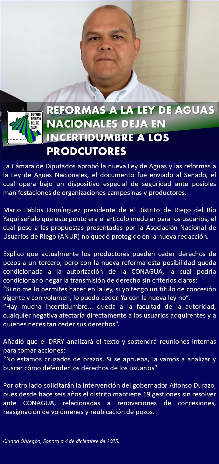 Las noticias más relevantes del Distrito de Riego del Río Yaqui
